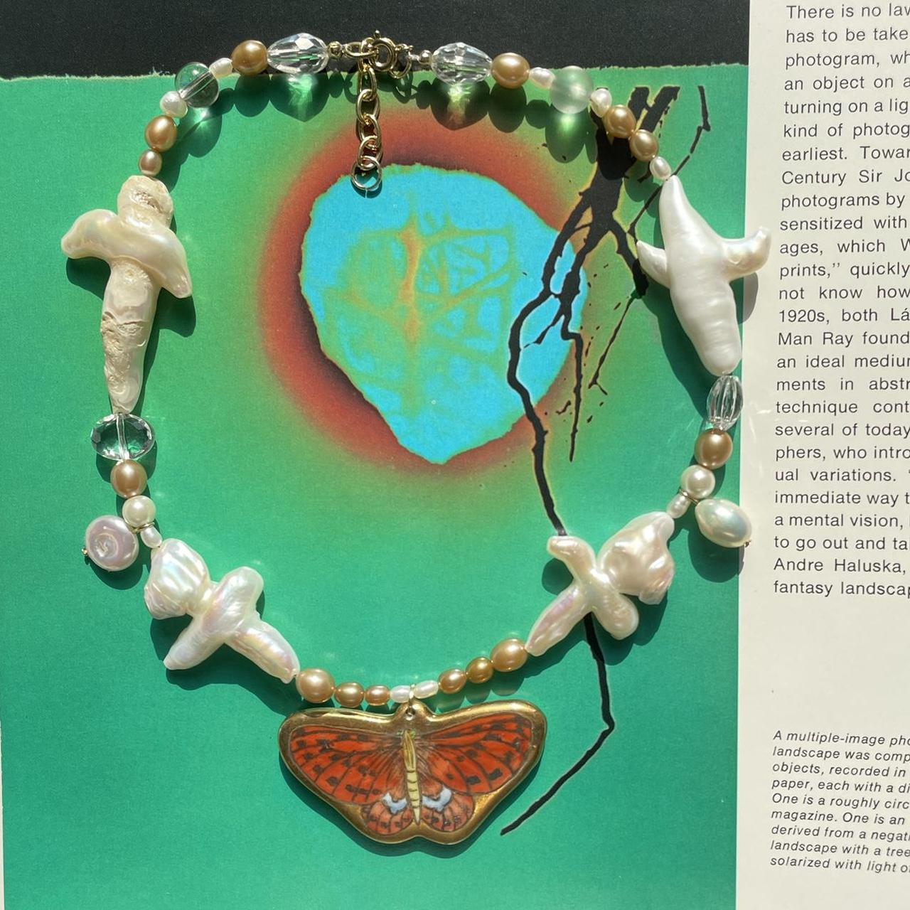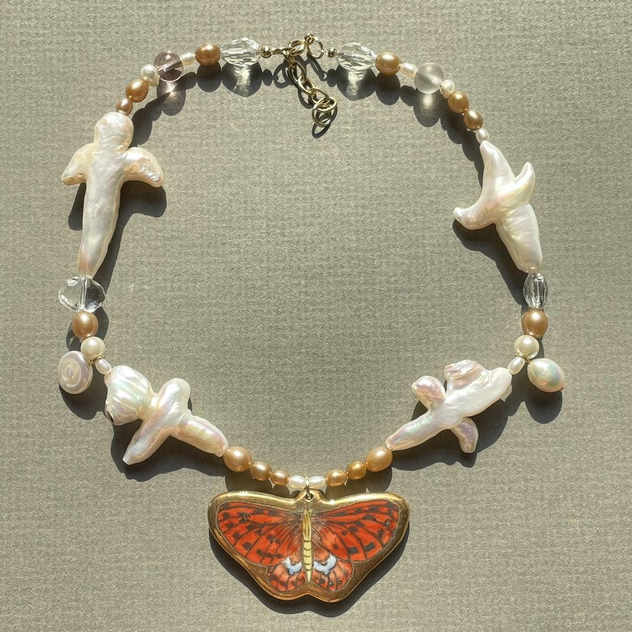 • handmade with freshwater pearls, crystal glass beads, and porcelain moth charm